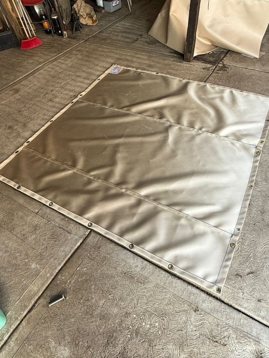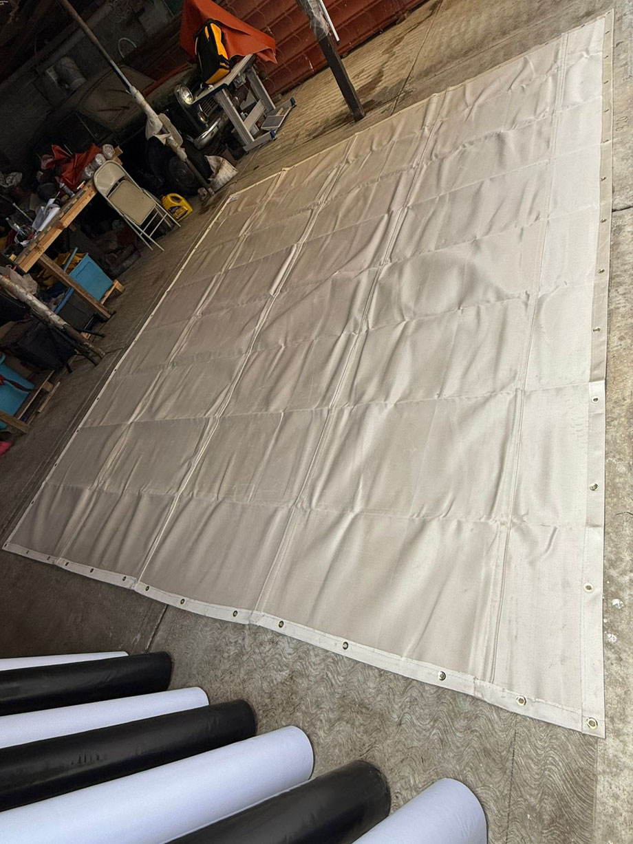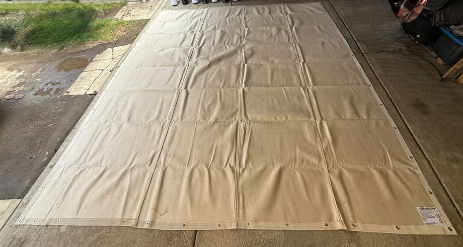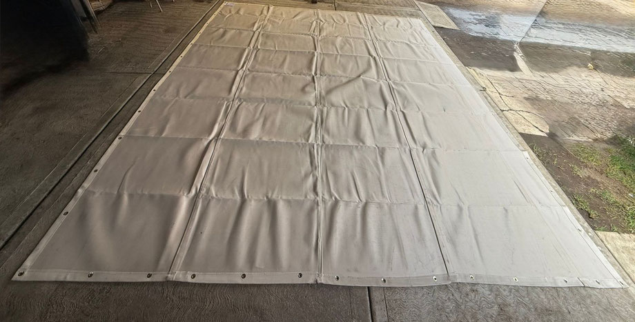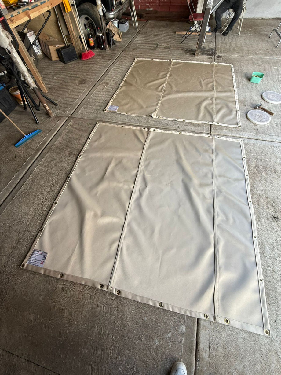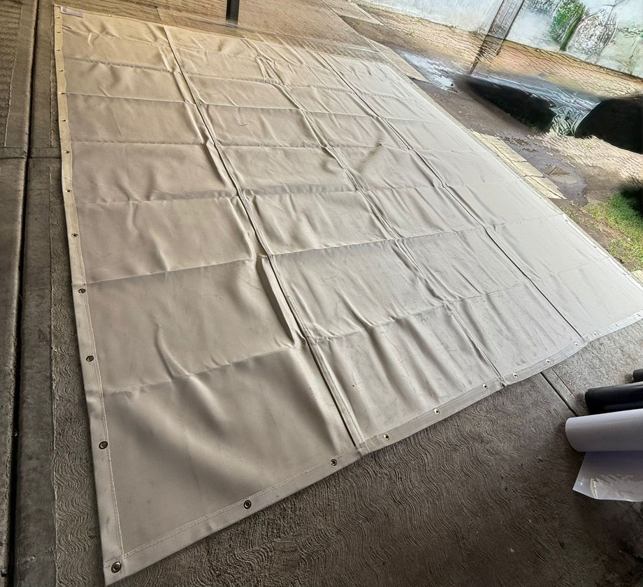 Lona Ignifuga Anti chispa para soldar - Fabricada a la medida, con bastilla y ojillos para su fácil colocación.