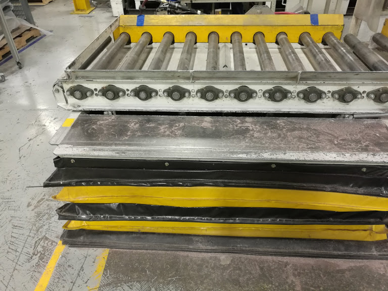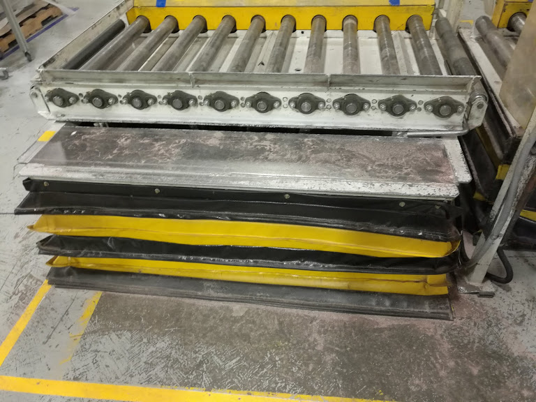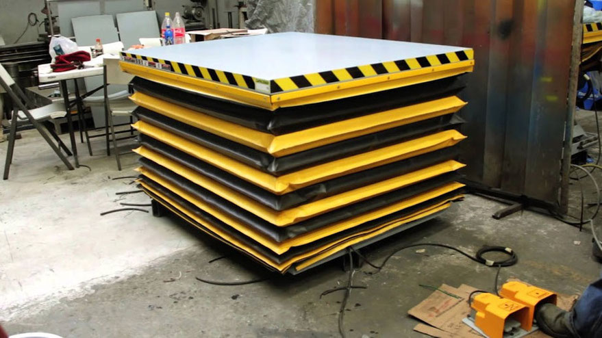 FUELLE TIPO ACORDEON PARA MESA ELEVADORA. FABRICADO A LA MEDIDA CON LONA DE PVC EN COLOR AMARILLO Y NEGRO.