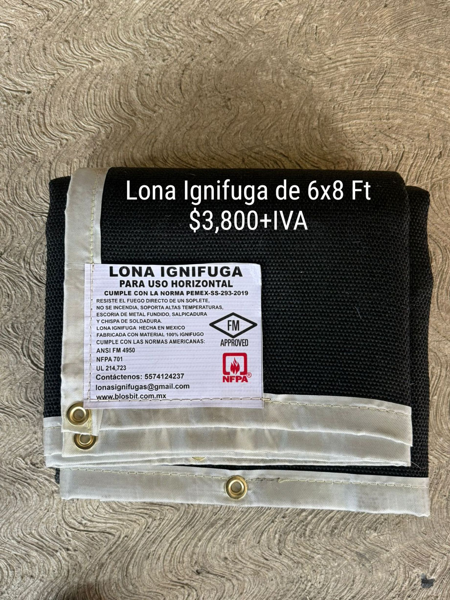 Lona Ignifuga de 6x8 FT - grado 2 - para uso horizontal - color negro - Entrega Inmediata - Envios a todo Mexico. Lona Ignifuga grado 2 para uso horizontal - color negro , resiste altas temperaturas, gota de soldadura, escoria de metal fundido, salpicadura y chispa de soldadura, cumple con la norma ANSI FM 4950 - norma NFPA 701 - norma UL 214, 723 - norma PEMEX NRF-293-2012 - Contactenos: lonaignifuga@gmail.com