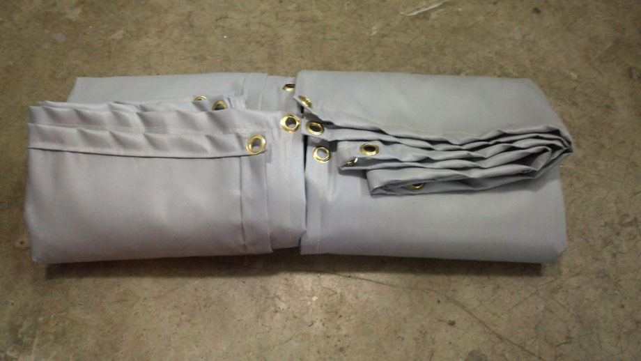 LONA IGNIFUGA PARA USO HORIZONTAL Y VERTICAL, Fabricada a la medida, con bastilla y ojillos para su facil colocación.