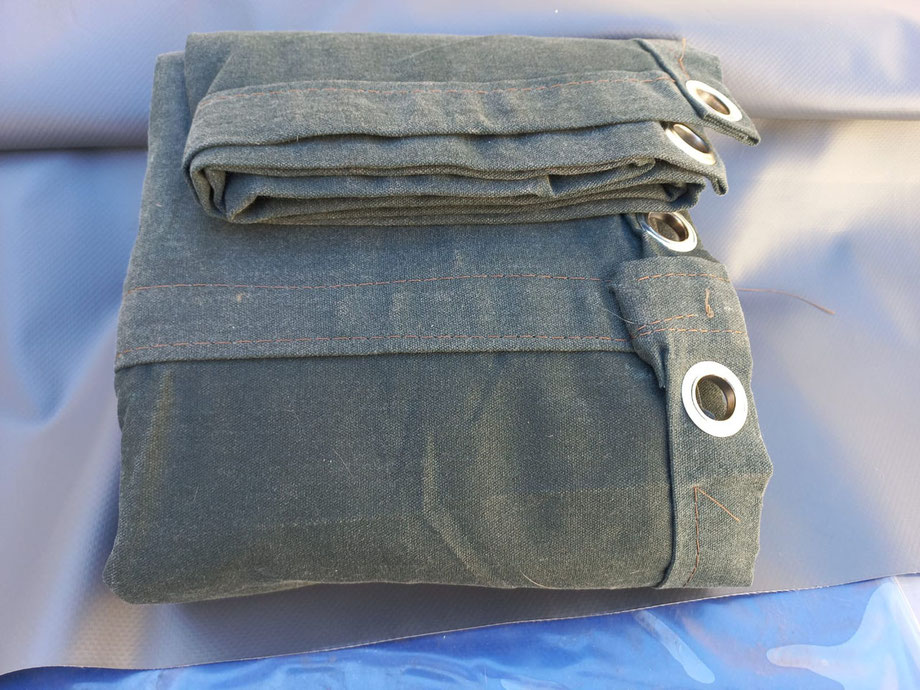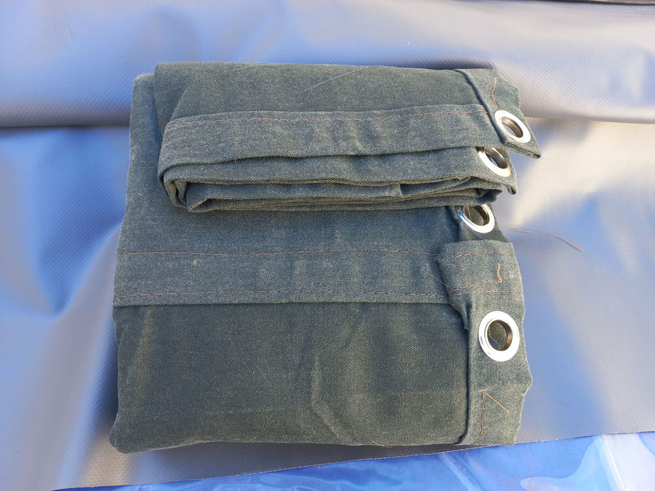 Lonas Anti chispa fabricadas a la medida, con bastilla y ojillos para su fácil colocación.